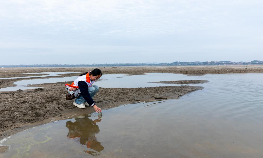 长江之畔,鸟鸣鱼跃。同学们选择好了安全的取水点,小心翼翼的汲取长江水质样本,进行观测,同学们的喜悦溢于言表。