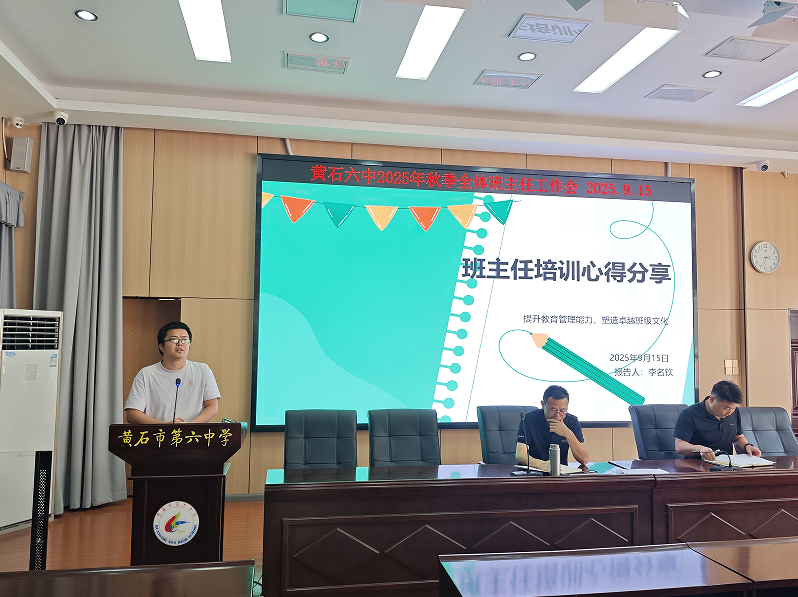 为进一步加强班主任队伍建设,提升班级管理水平,部署新学期重点工作,9月15日下午,黄石六中召开2025年秋季学期全体班主任工作会议。会议由德体卫艺处负责人李仁玉老师主持,副校长张玉国出席会议并讲话,各年级主任及全体班主任参加会议。