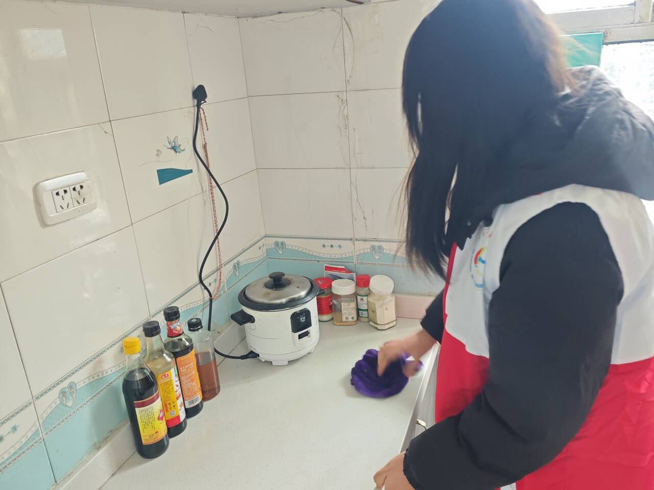 思政教育的生命力在于与实践相结合。随后,同学们分头开展志愿服务:一组拿起工具,对六中门口至雷锋长廊沿线的道路、绿化带进行清理,以实际行动践行“劳动最光荣”;另一组走进独居老人家中,打扫卫生、整理房间,陪老人聊天解闷,用真情传递温暖。在老人家中,同学们边劳动边聆听老一辈的奋斗故事,在服务中感悟奉献的意义。