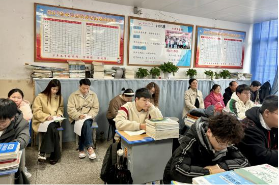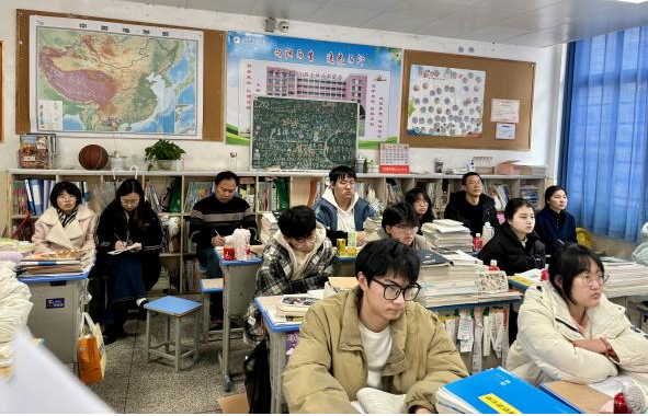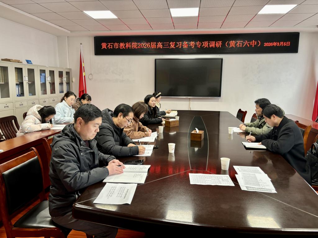 为深入贯彻落实《市教育局关于开展“质量在一线、管理进课堂”活动的通知》要求,进一步深化课堂教学改革,精准把脉高三备考及基础年级教学,助力教师专业成长,2026年3月5日,市教育局副局长陈剑峰、市教科院副院长朱青松带领语文、物理、化学、生物、地理五位学科教研员,莅临黄石六中开展了全面、深入的教学视导工作。